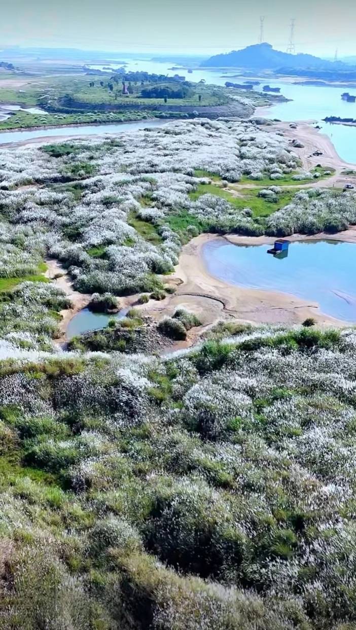 那在水一方的倩影就是秋天的标配大片的芦花绽放如“雪”