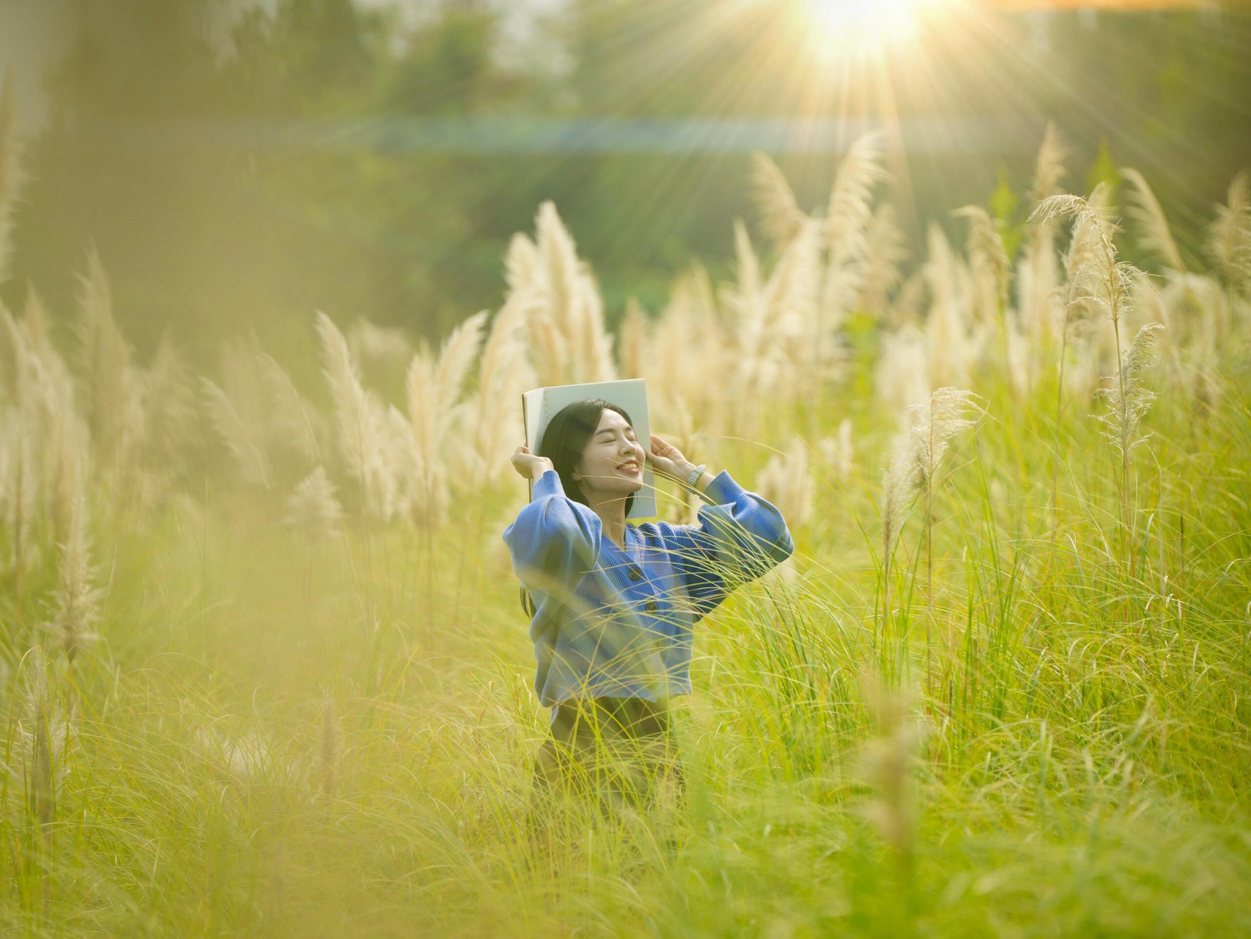 如梦似幻秋日的夕阳照在雪白的芦花上