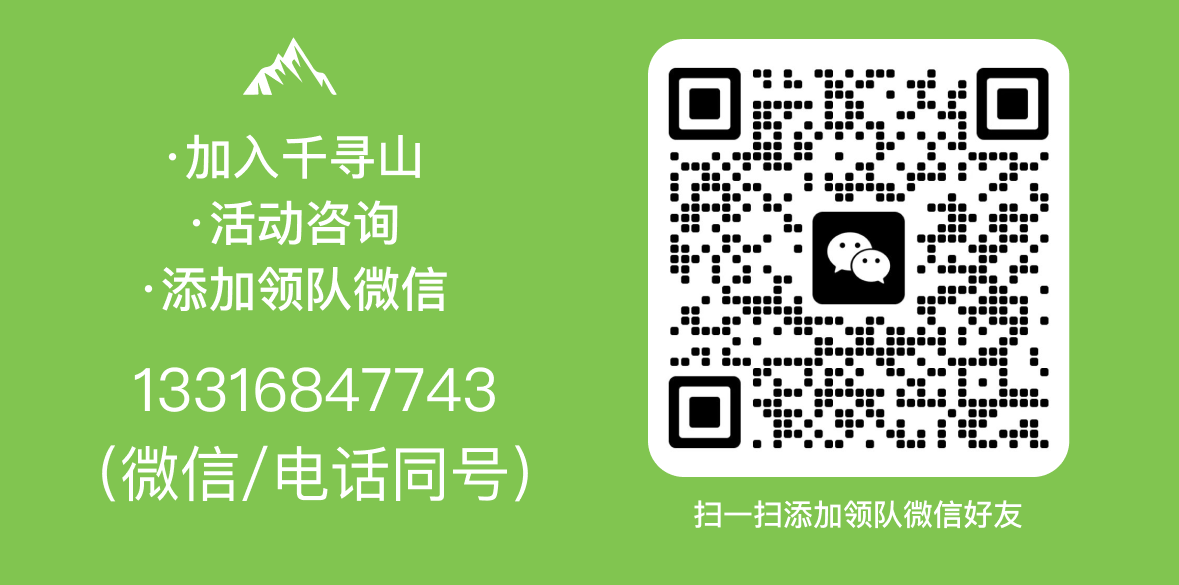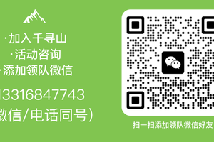 进群流程:搜千寻山小程序→点我的→点活动订单→点开出行活动订单→点击扫码加入活动微信群,也可以联系客服 千寻山无忧 拉进群(微信号:QXSHW2025)