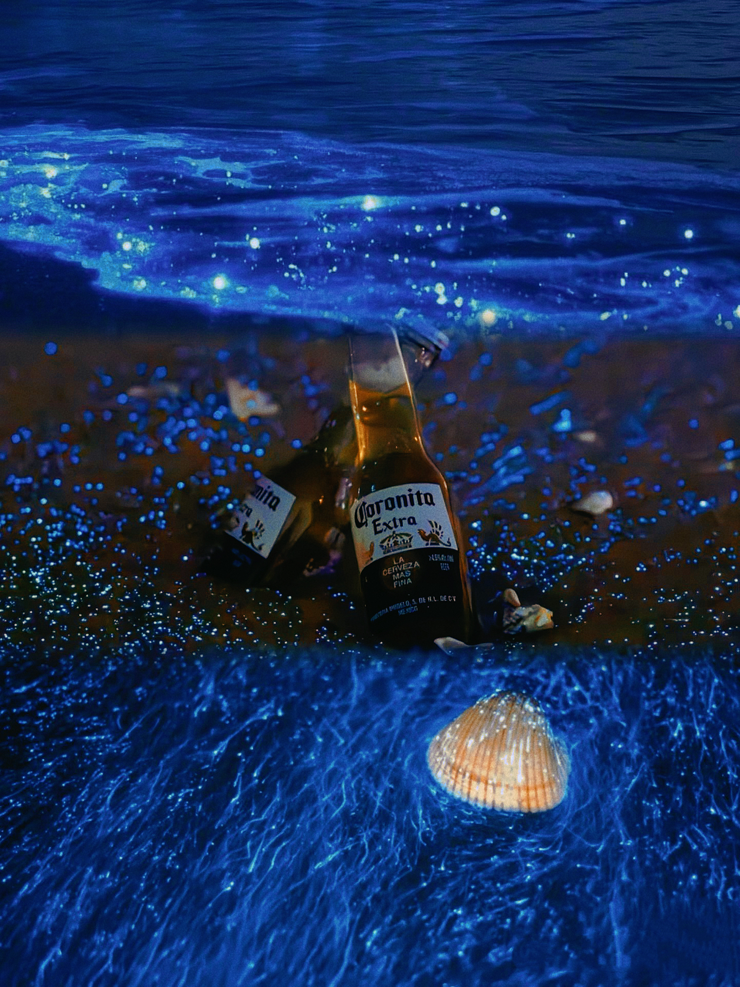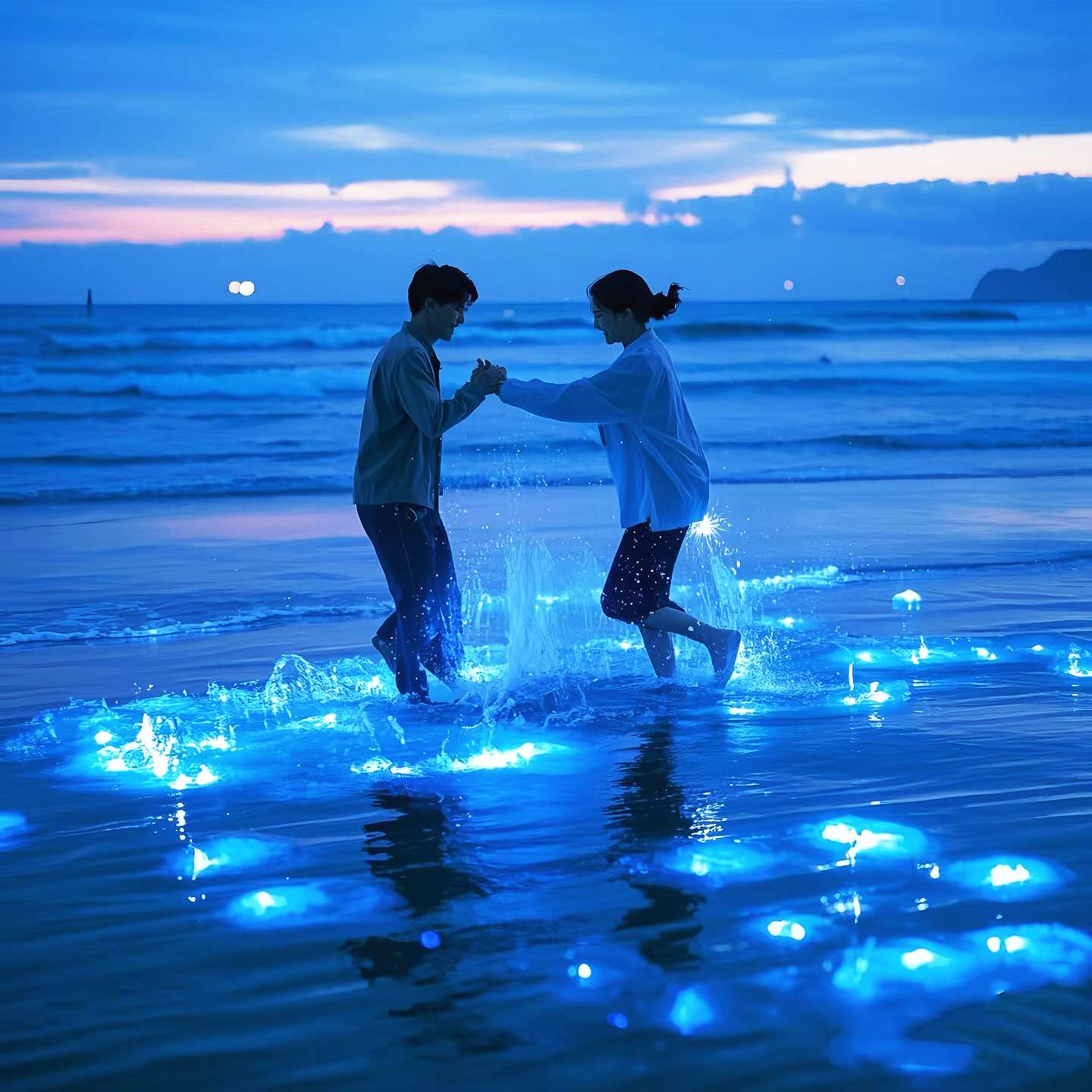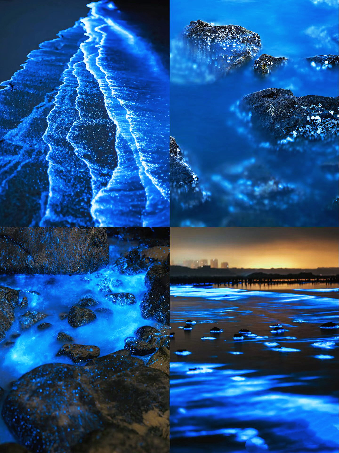 绵长的海岸线上充盈着幽蓝色的光点