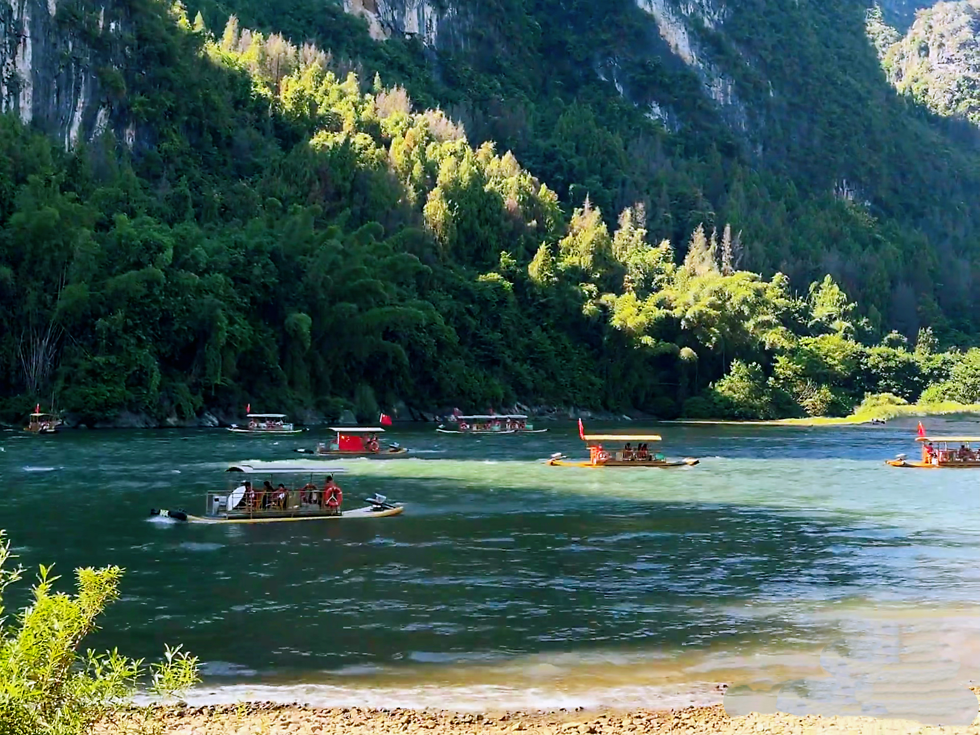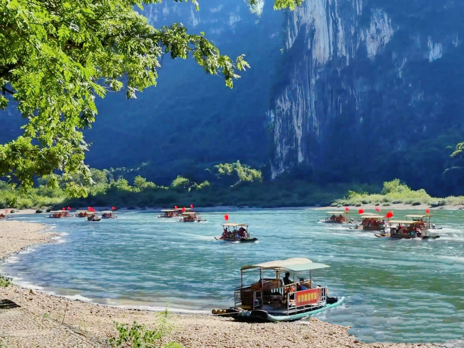 沿途可看到黄布滩倒影(20元人民币背景)、黄布滩、九龙画山、兴坪古镇风光